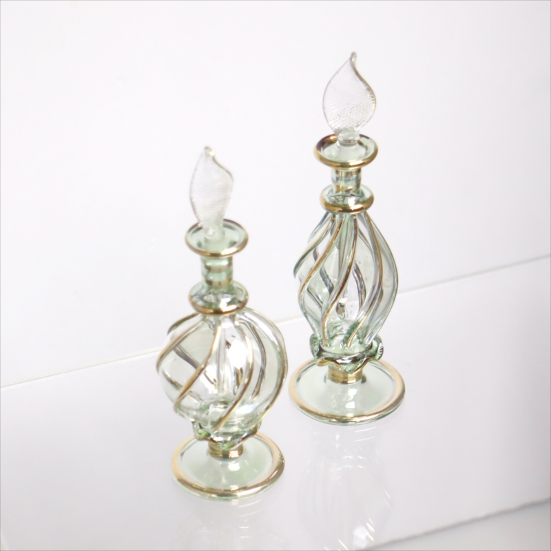 5. エジプト ガラス香水瓶 11cm 2本セット ゴールドライン ファラオ Egyptian Glass Bottle