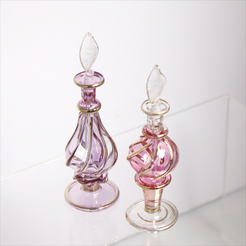5. エジプト ガラス香水瓶 11cm 2本セット ゴールドライン ファラオ Egyptian Glass Bottle