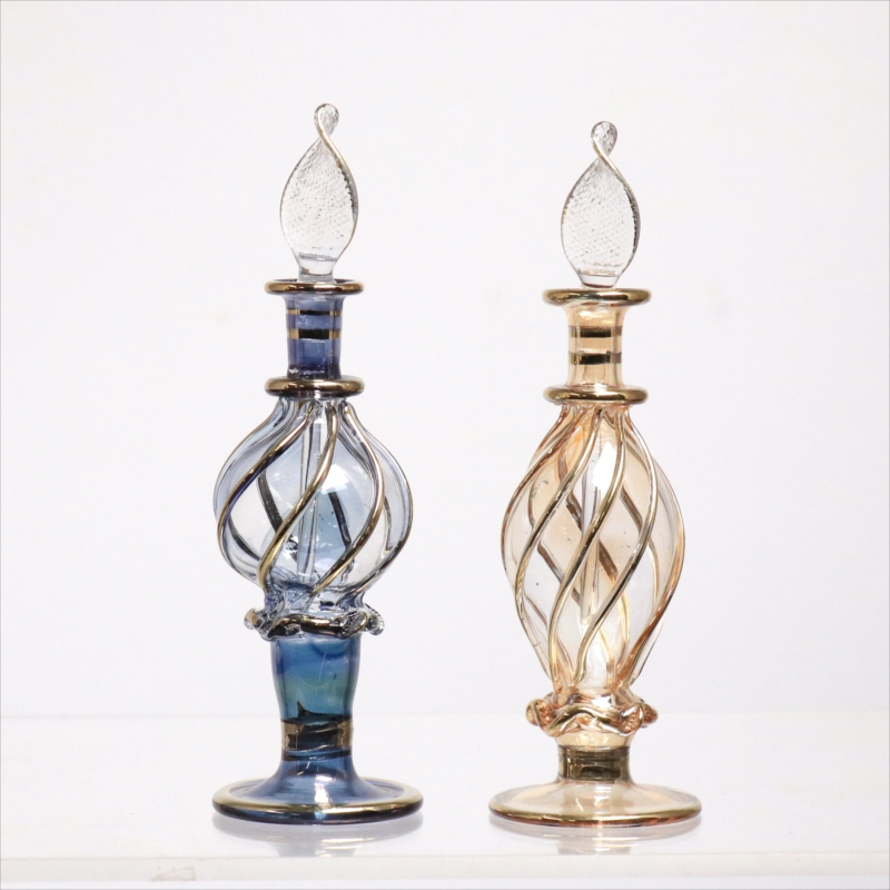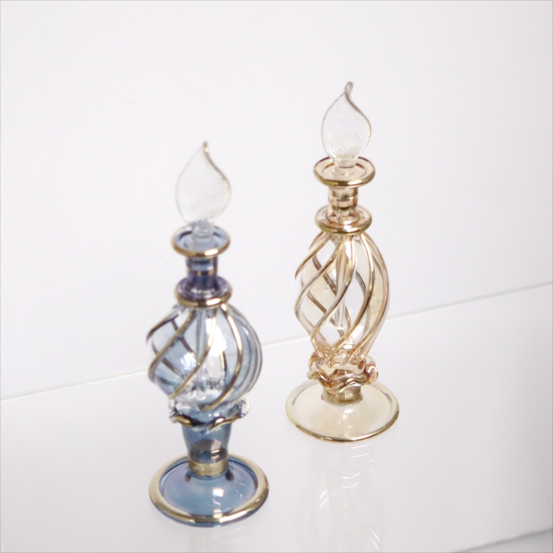 エジプト ガラス香水瓶 11cm 2本セット ゴールドライン ファラオ Egyptian Glass Bottle