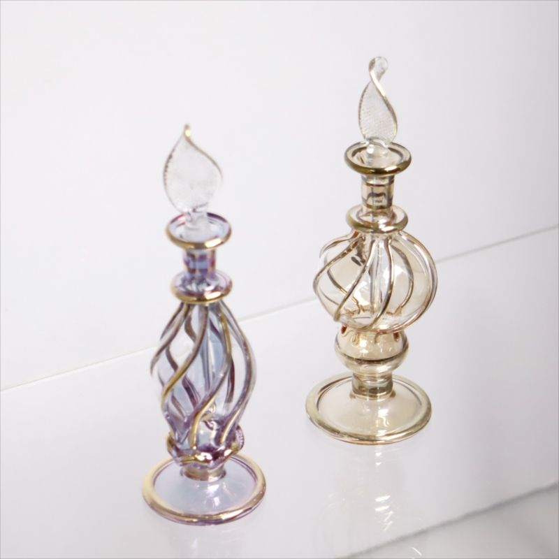 5. エジプト ガラス香水瓶 11cm 2本セット ゴールドライン ファラオ Egyptian Glass Bottle