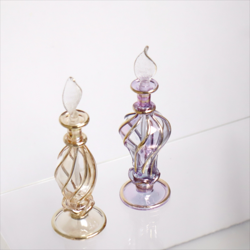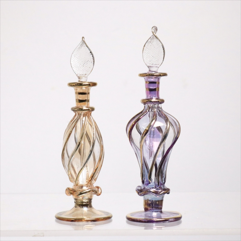 エジプト ガラス香水瓶 11cm 2本セット ゴールドライン ファラオ Egyptian Glass Bottle