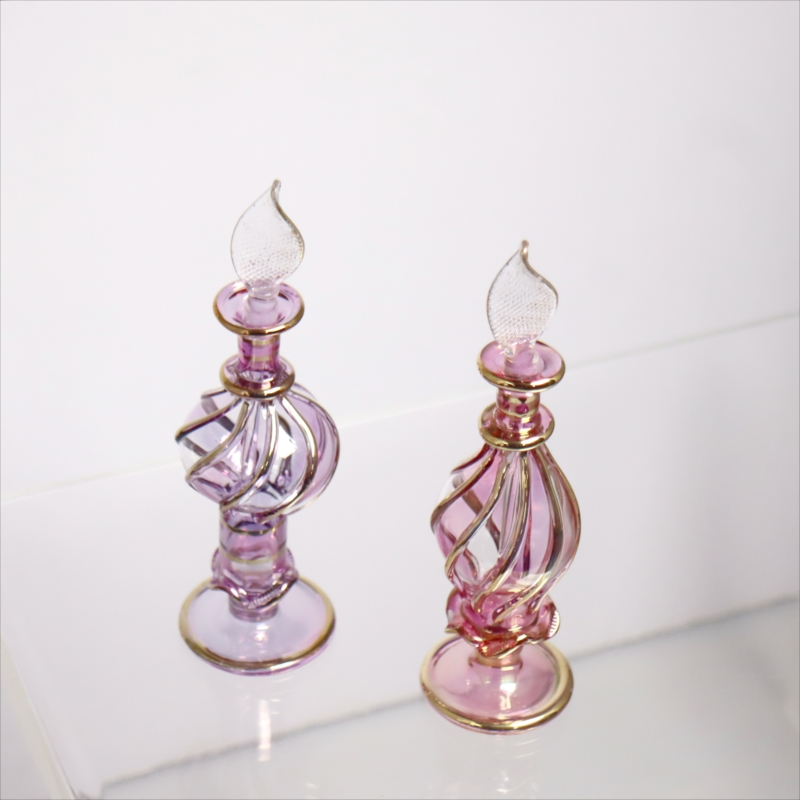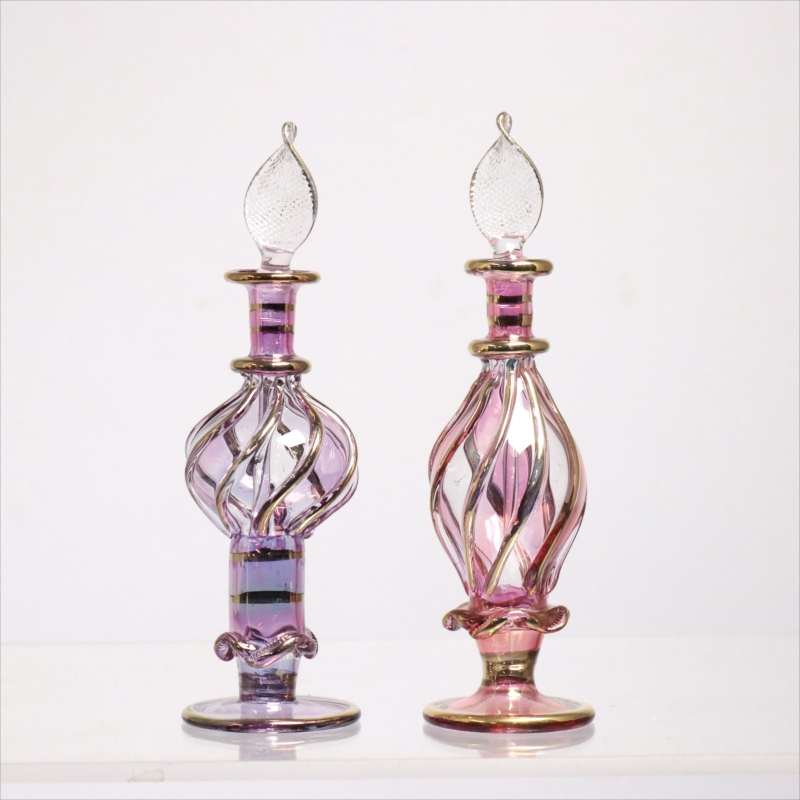 5. エジプト ガラス香水瓶 11cm 2本セット ゴールドライン ファラオ Egyptian Glass Bottle