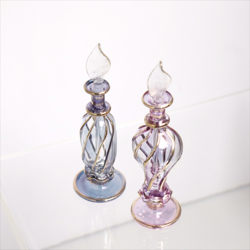 実際に香水瓶として使うこともできますが、やや密閉性が低いので、置物・飾り・一輪挿しなどとしてお楽しみください。