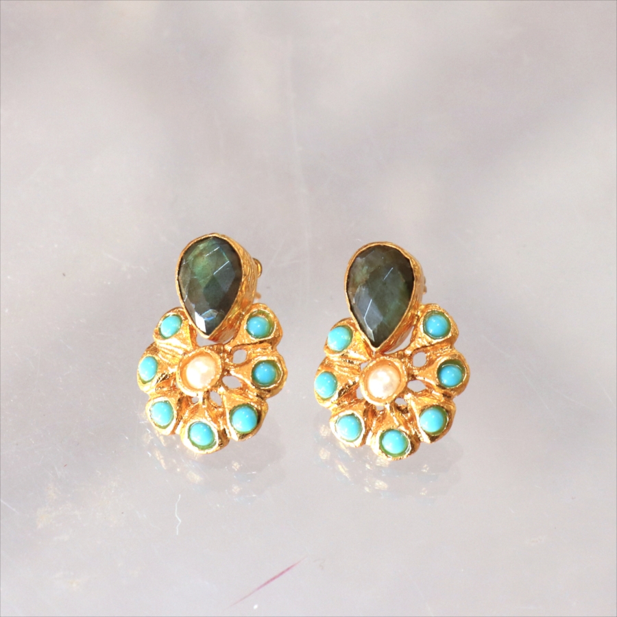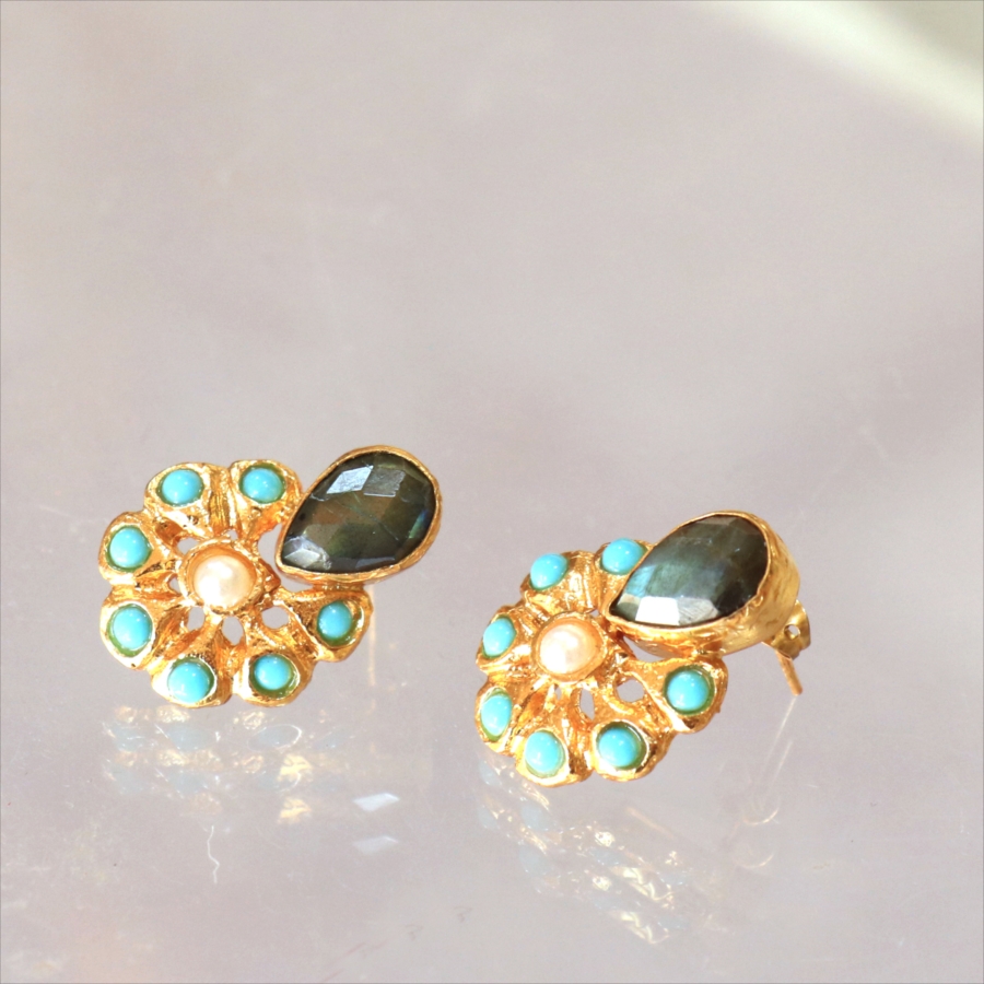 アルサメイア ピアス 古代王朝のデザイン 天然石22Kゴールドプレーテッド トルコジュエリー 色石