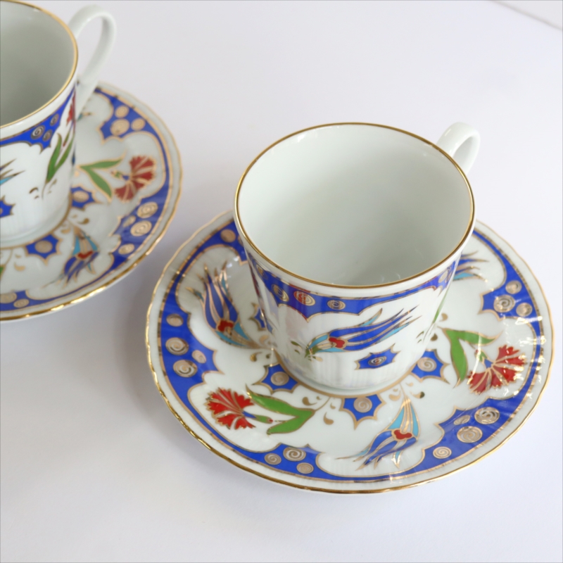 - ティーカップ&ソーサー 2客セット トルコ製:カーネーション
