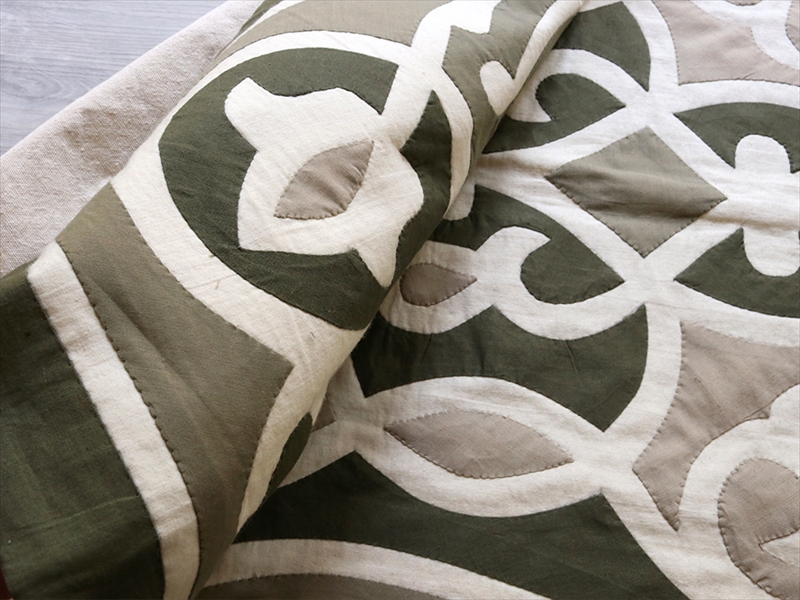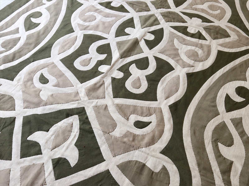エジプト・カイロにある、布ものの職人が集まった地域の名前からアップリケ刺繍をハーヤ・メーヤ(Khayameya)と呼ぶようになりました。古い時代のカイロの面影を色濃く残した職人街で、昔から作られ続けている伝統の飾り布です。型紙をあてて布をカットするところからひとつひとつ手仕事で行われています。