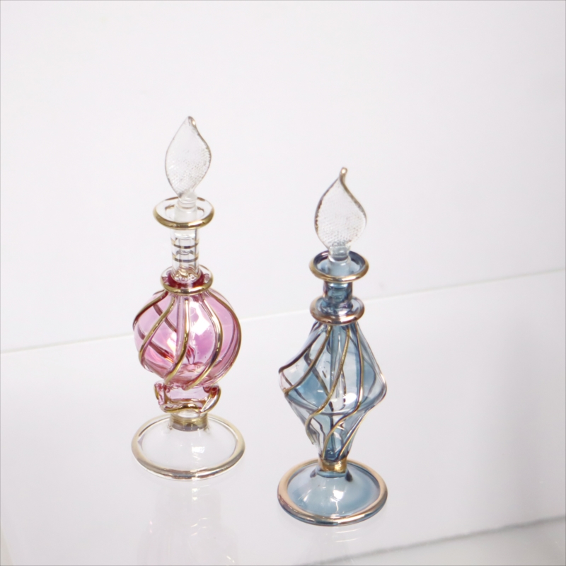 エジプト ガラス香水瓶 11cm 2本セット ゴールドライン ファラオ Egyptian Glass Bottle