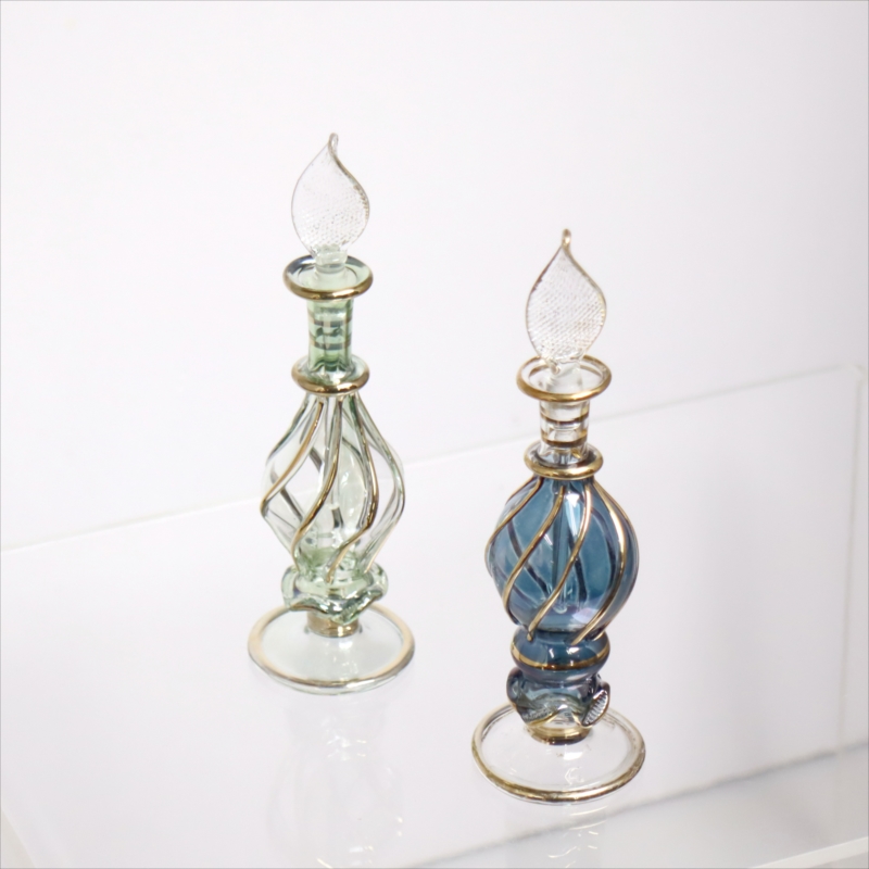 エジプト ガラス香水瓶 11cm 2本セット ゴールドライン ファラオ Egyptian Glass Bottle