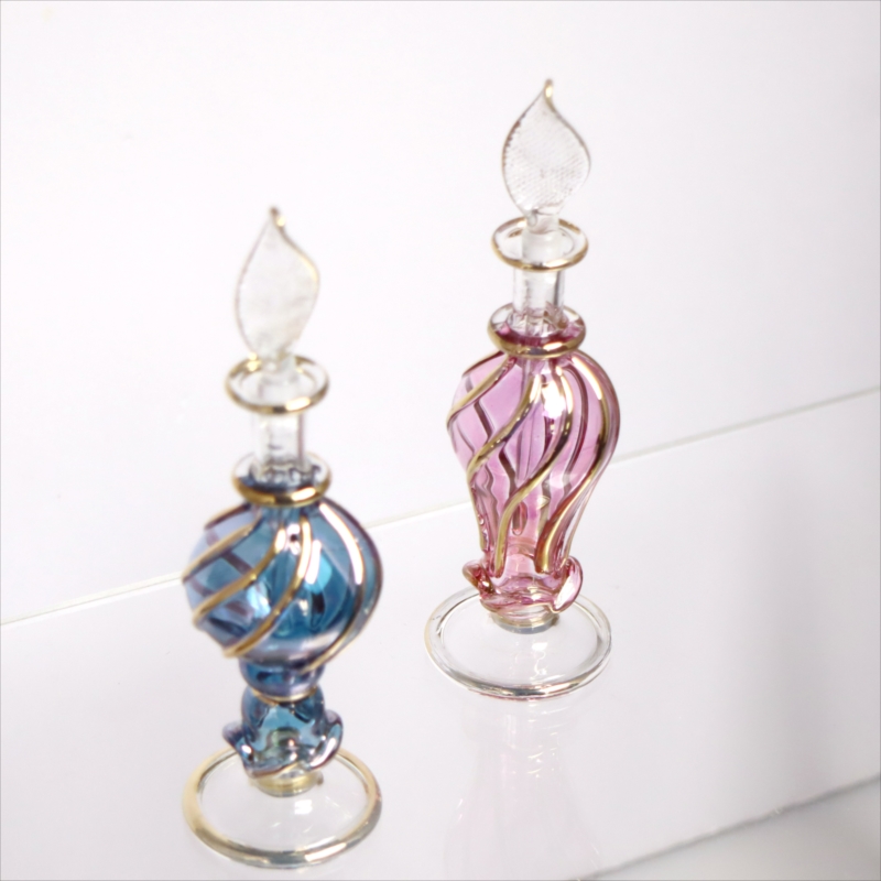 エジプト ガラス香水瓶 11cm 2本セット ゴールドライン ファラオ Egyptian Glass Bottle