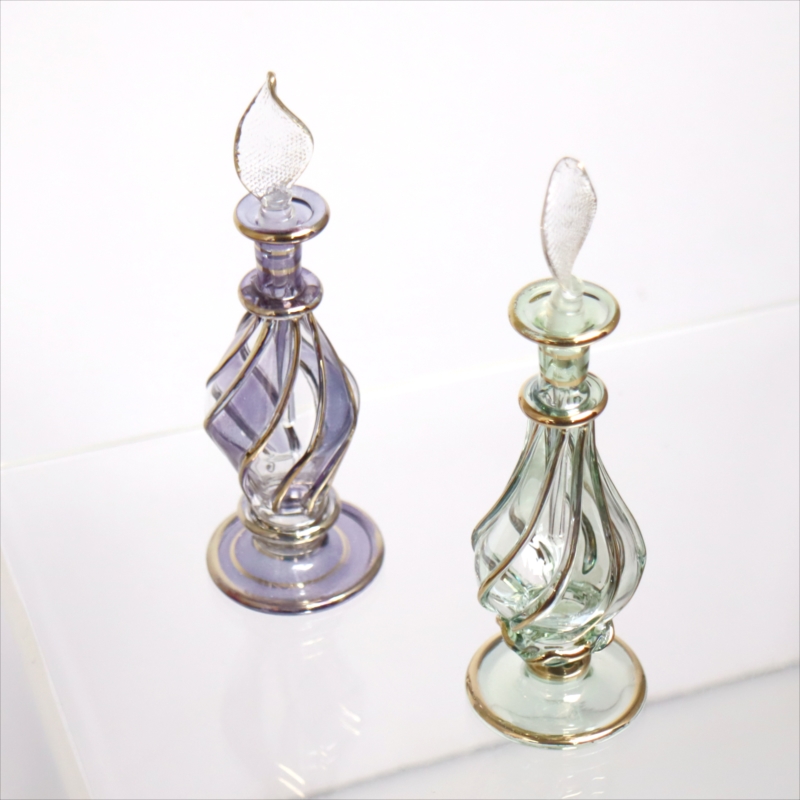 5. エジプト ガラス香水瓶 11cm 2本セット ゴールドライン ファラオ Egyptian Glass Bottle