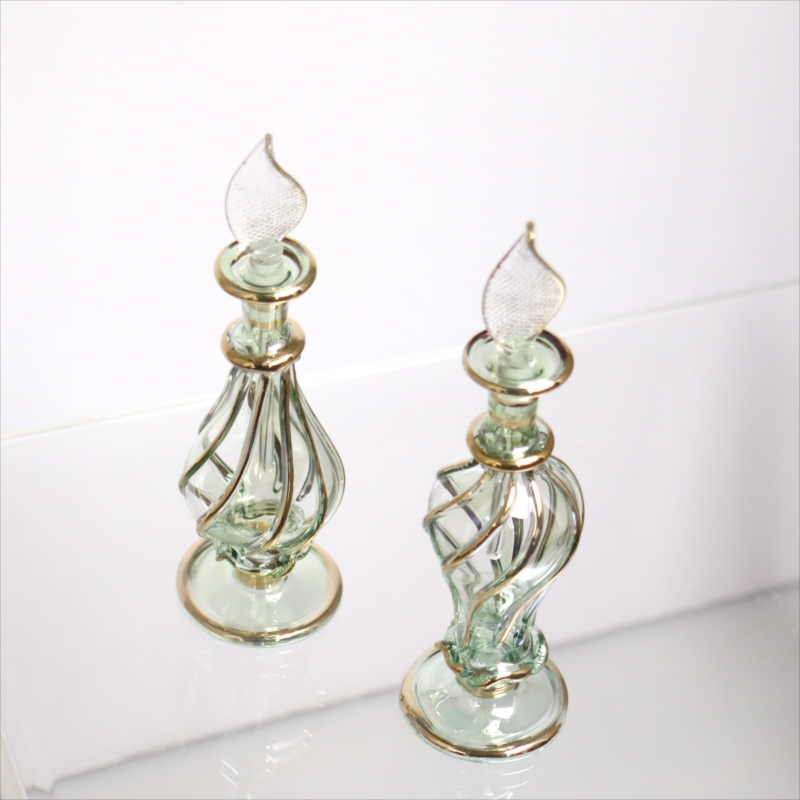 5. エジプト ガラス香水瓶 11cm 2本セット ゴールドライン ファラオ Egyptian Glass Bottle