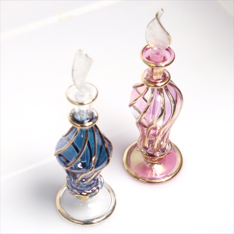エジプト ガラス香水瓶 11cm 2本セット ゴールドライン ファラオ Egyptian Glass Bottle