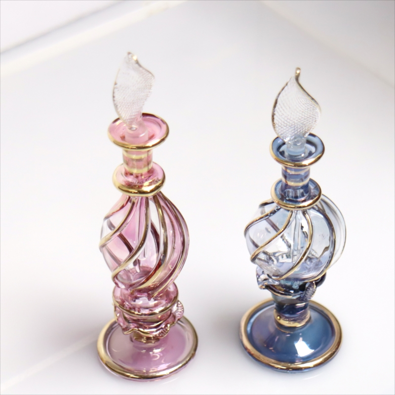 エジプト ガラス香水瓶 11cm 2本セット ゴールドライン ファラオ Egyptian Glass Bottle