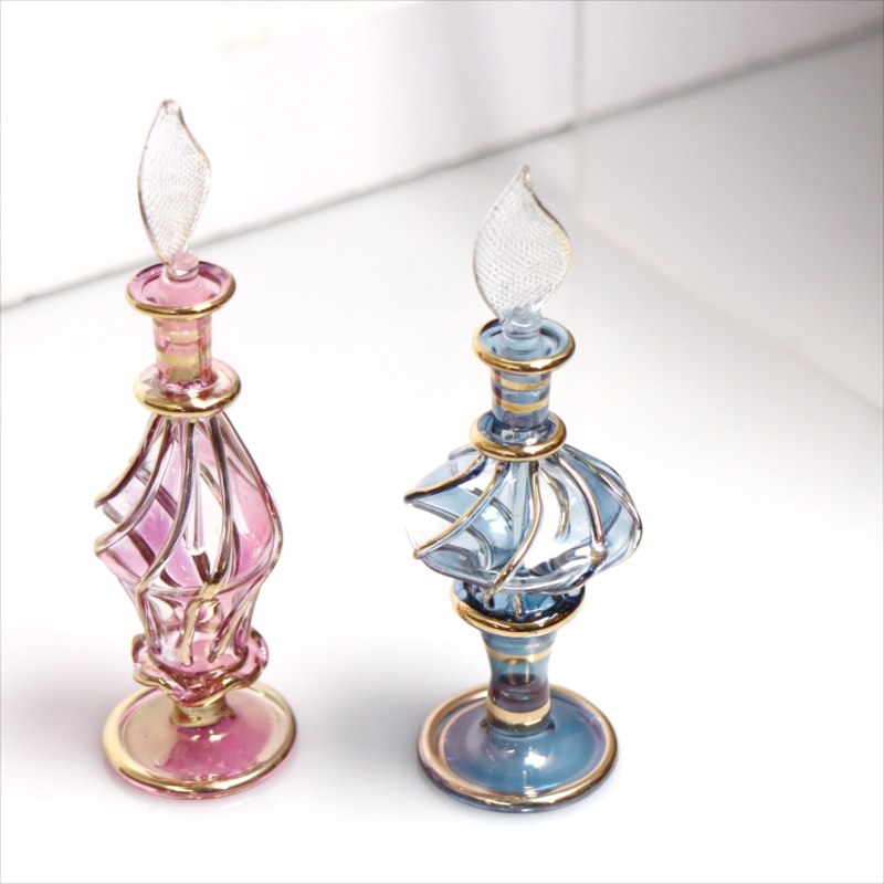 5. エジプト ガラス香水瓶 11cm 2本セット ゴールドライン ファラオ Egyptian Glass Bottle