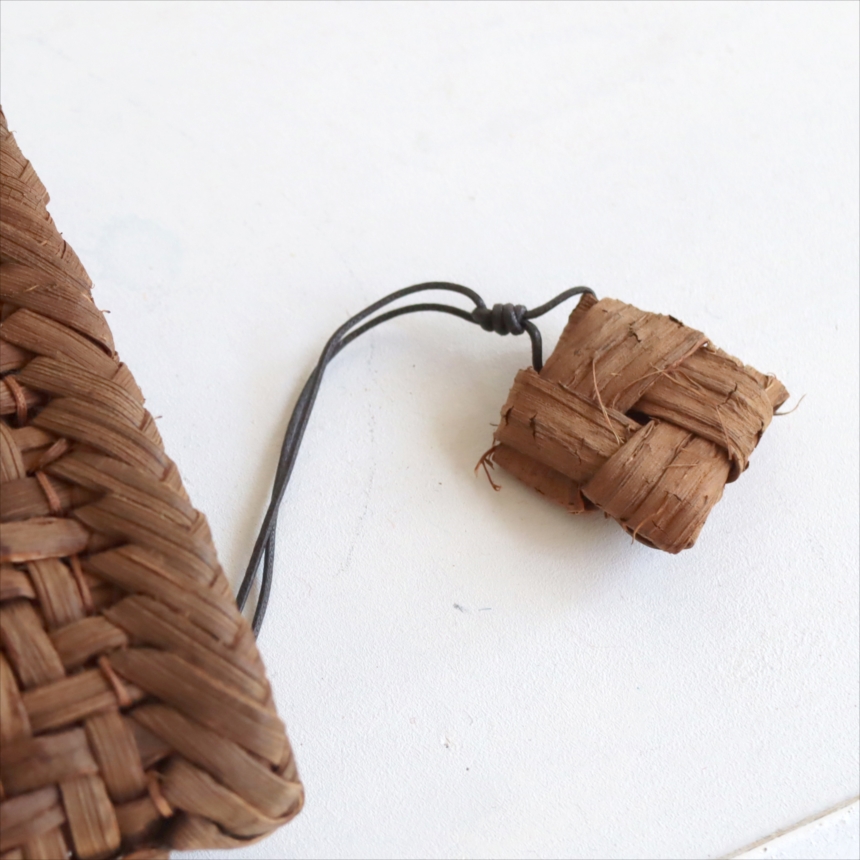 山ぶどうの蔓を編んでつくられた根付です。素朴で自然な風合いを楽しめます。使って撫でてを繰り返していると、艶が出て味わい深い質感に変わっていきます。その変化もお楽しみください。