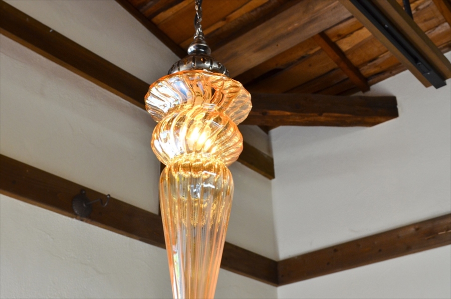 透明なガラスは、明るく実用的でシンプルなランプなのでモダンなお部屋にもピッタリです。チェーンはアラベスク模様、カップはクラシカルデザインと細部にこだわったデザインも魅力的です。