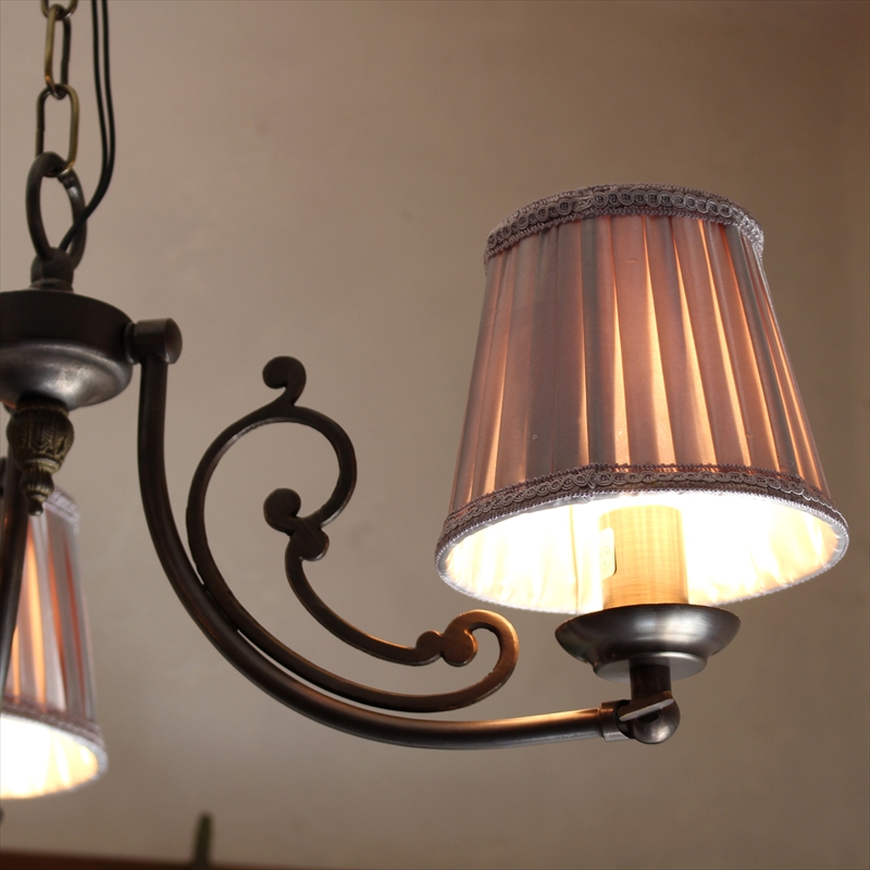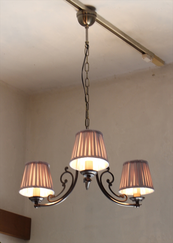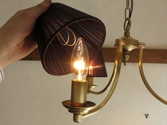 シャンデリア3灯 真鍮製アンティークブロンズ布シェード ココアブラウン