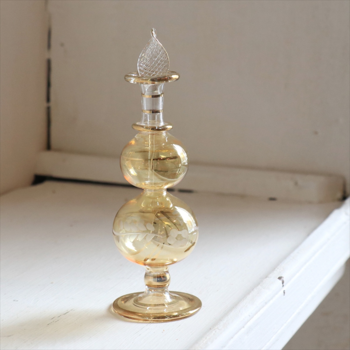 エジプト ガラス 香水瓶 クレオパトラ 15cm イエロー