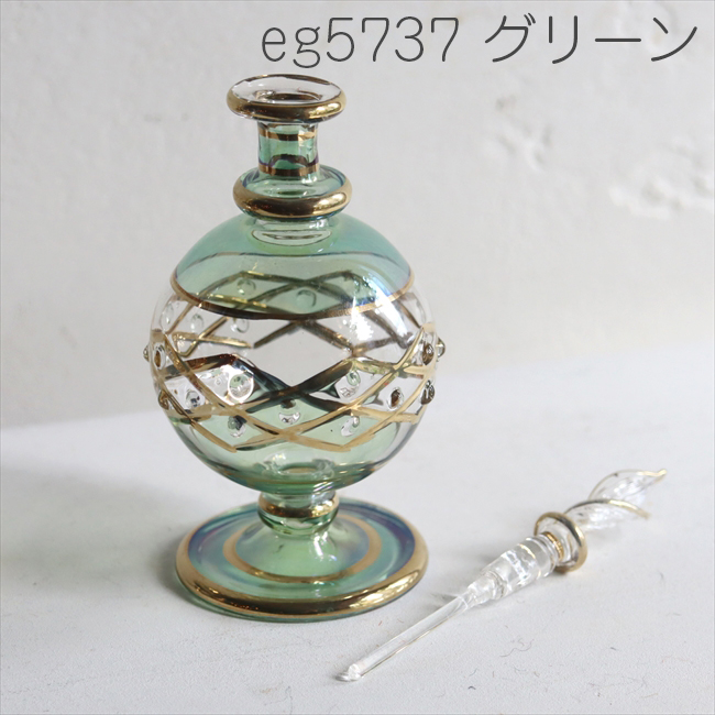 エジプトガラス香水瓶 クレオパトラ 13cm 直径5cm グリーン Egyptian Perfume Bottle