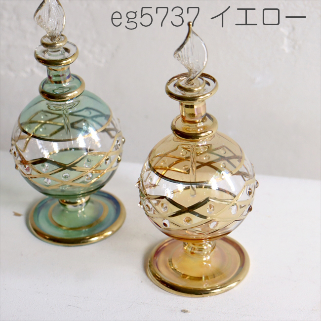 エジプトガラス香水瓶 クレオパトラ 13cm 直径5cm イエロー Egyptian Perfume Bottle