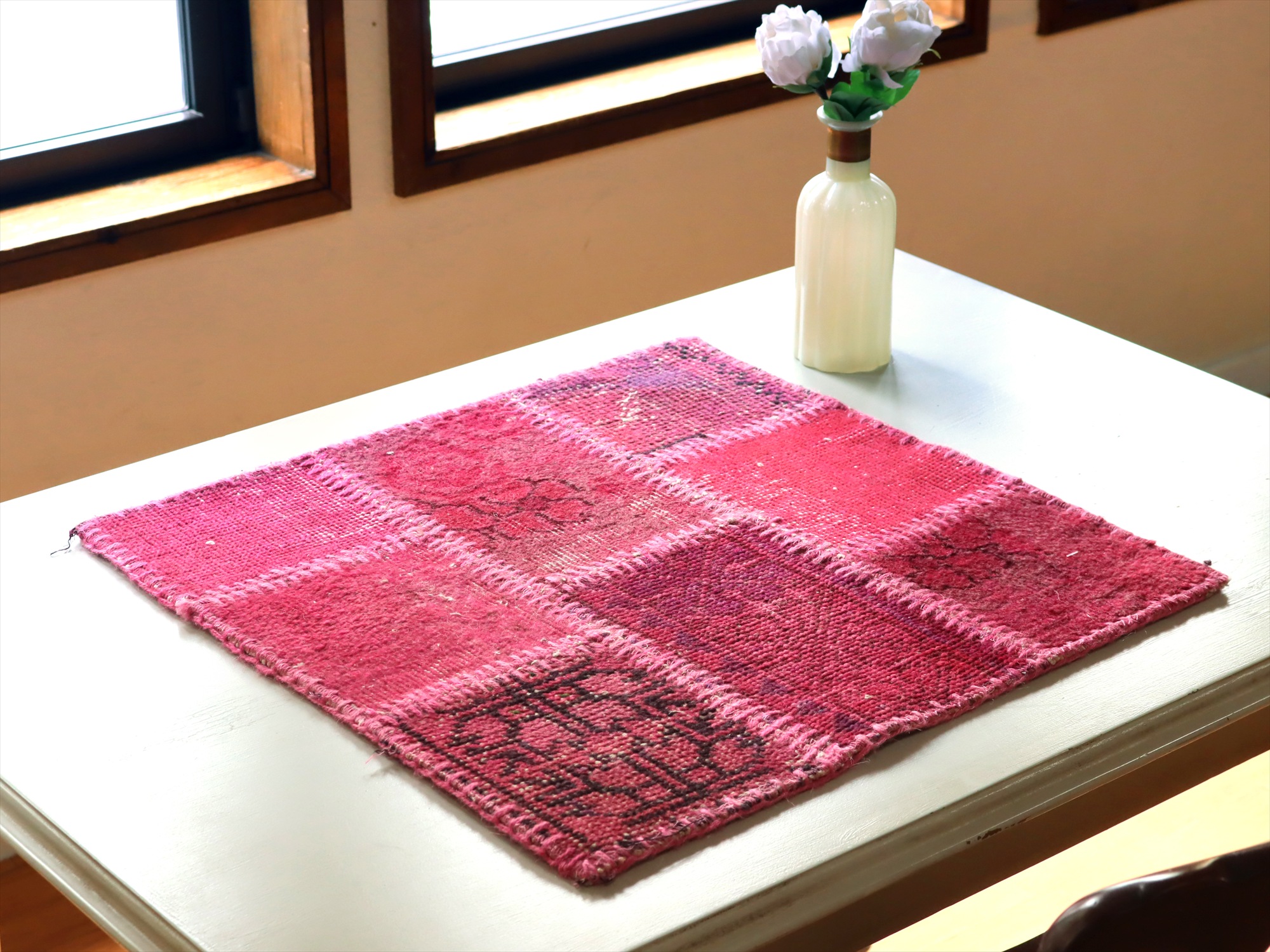 パッチワークラグ ミニフラグメント52×52cm ピンク