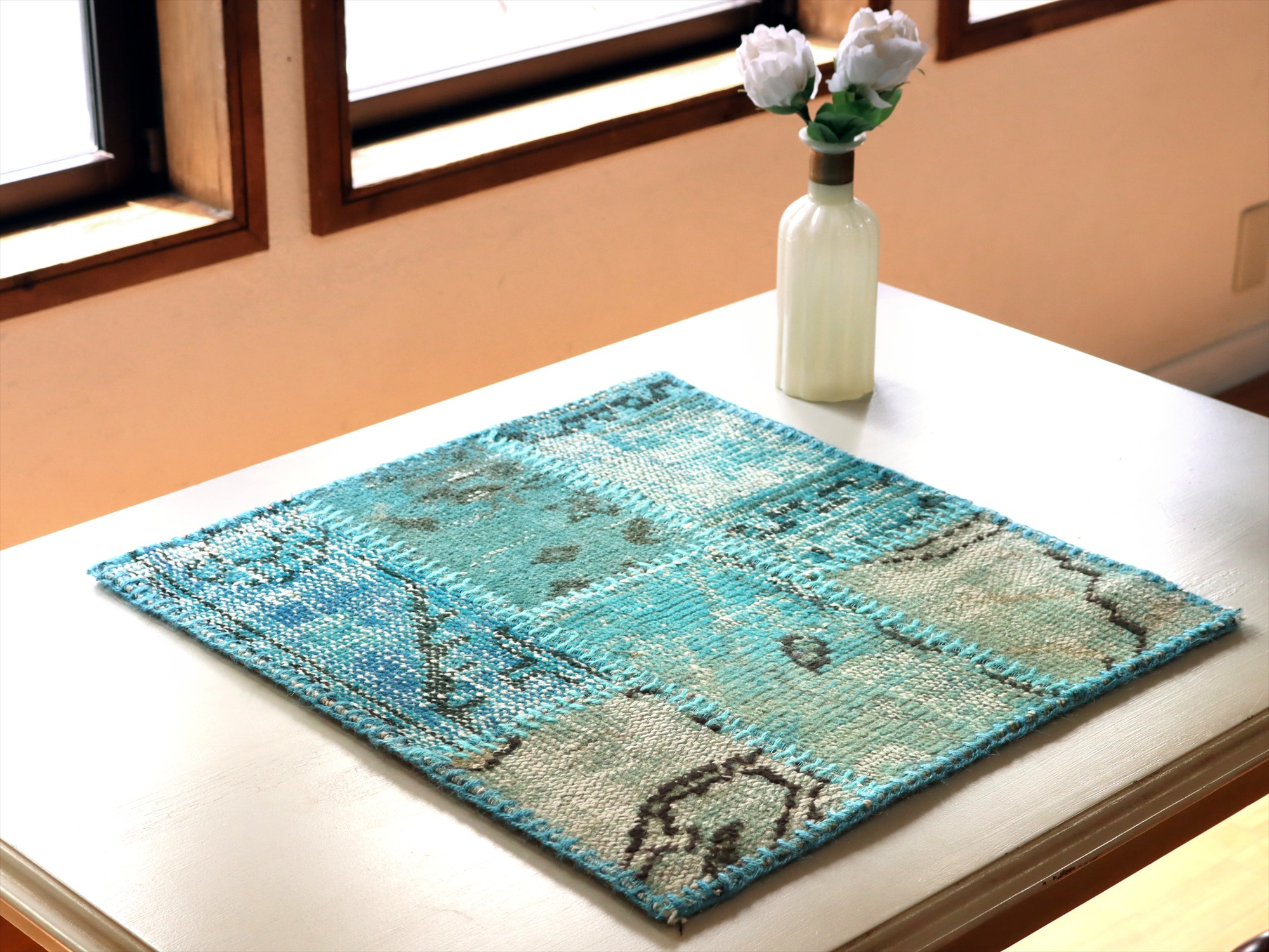 パッチワークラグ ミニフラグメント52×48cm ターコイズ
