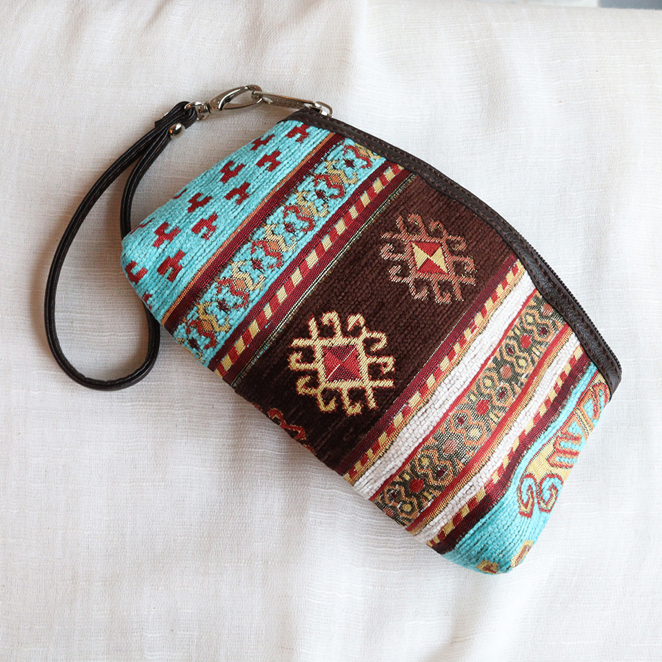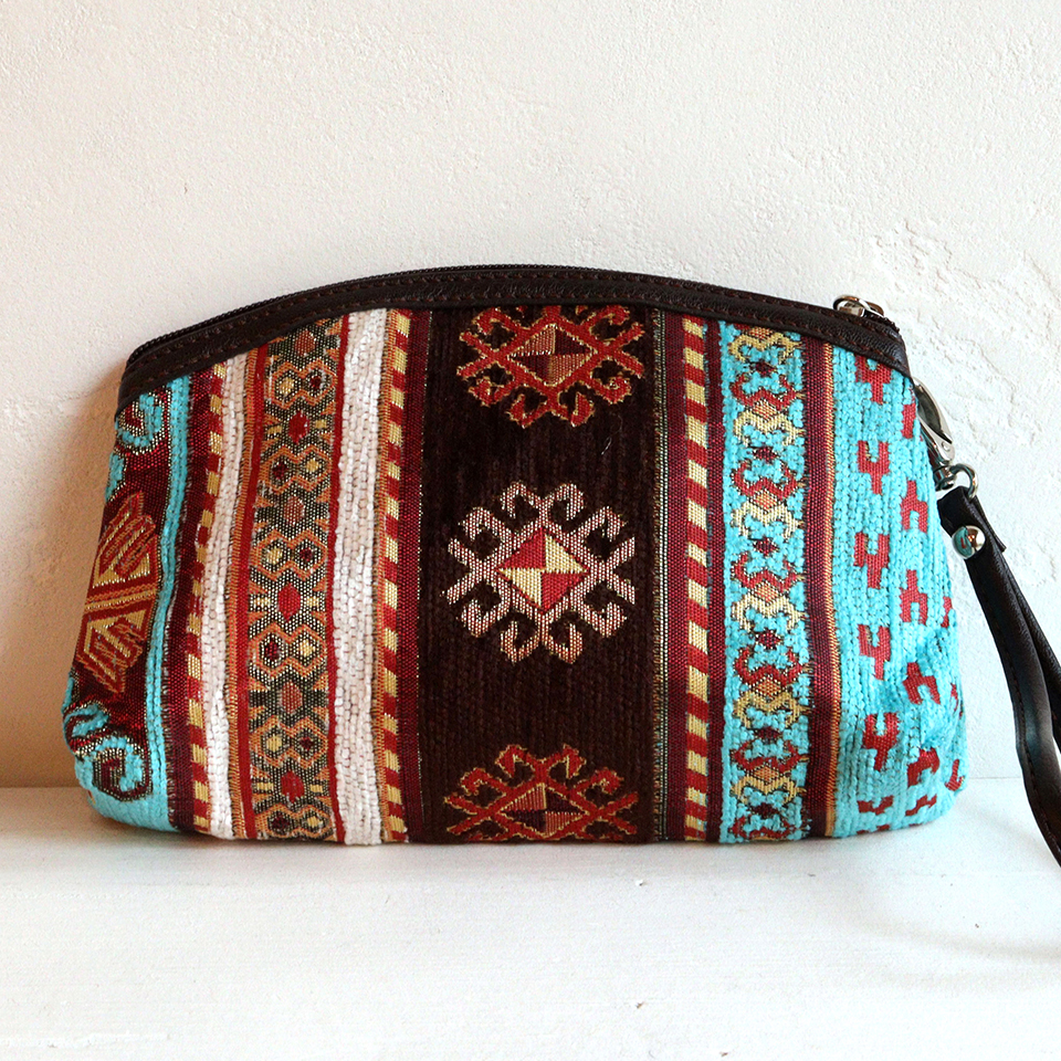 トルコの伝統柄を織り込んだ、エスニックなデザイン&カラーのポーチです。