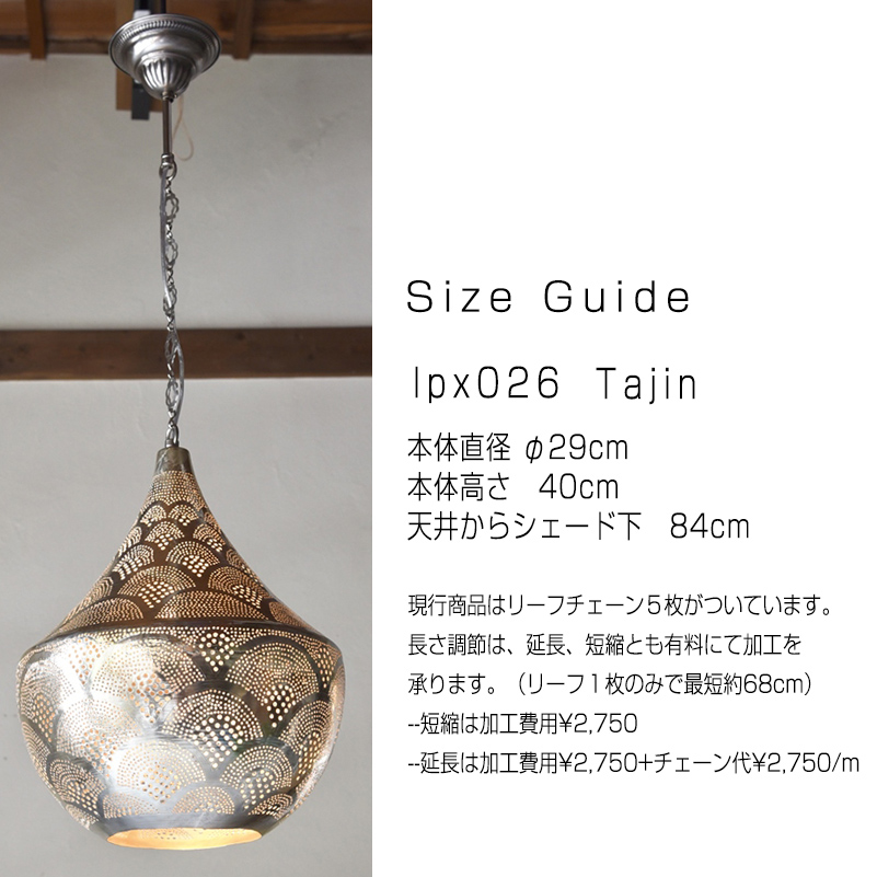 仕 様 | 口金/E17 60Wまで対応 ※LED電球対応 全高の延長・短縮は加工費用 2,750+チェーン代 2,750/mより承ります。 |