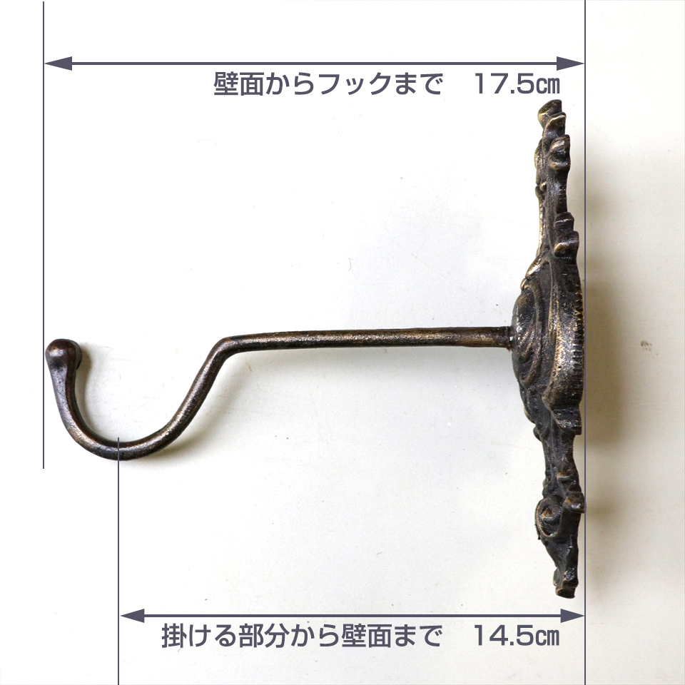 | サイズ | 長さ16.4cm×幅7.3cm 壁からフックの先まで17.5cm 壁からフックのかける部分まで14.5cm |