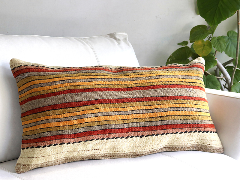 - 【15%OFF】オールドキリムクッションカバー 長方形ビッグピロー72×38cm ナチュラルカラー シンプル Turkish Old Kilim Cushion