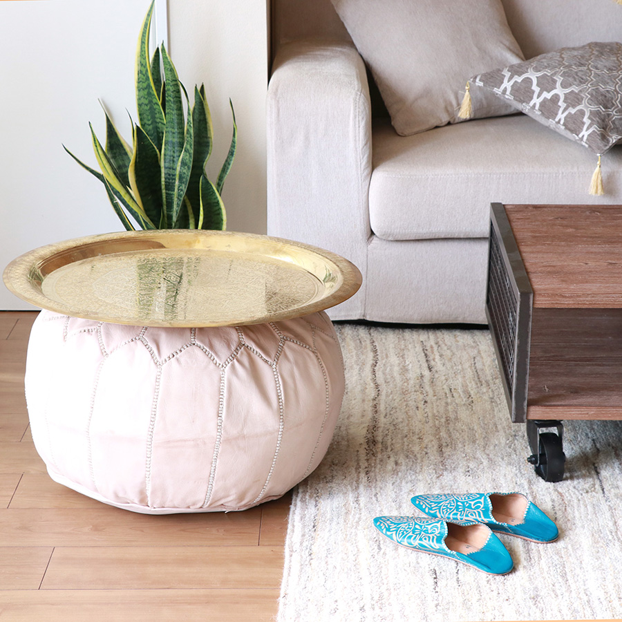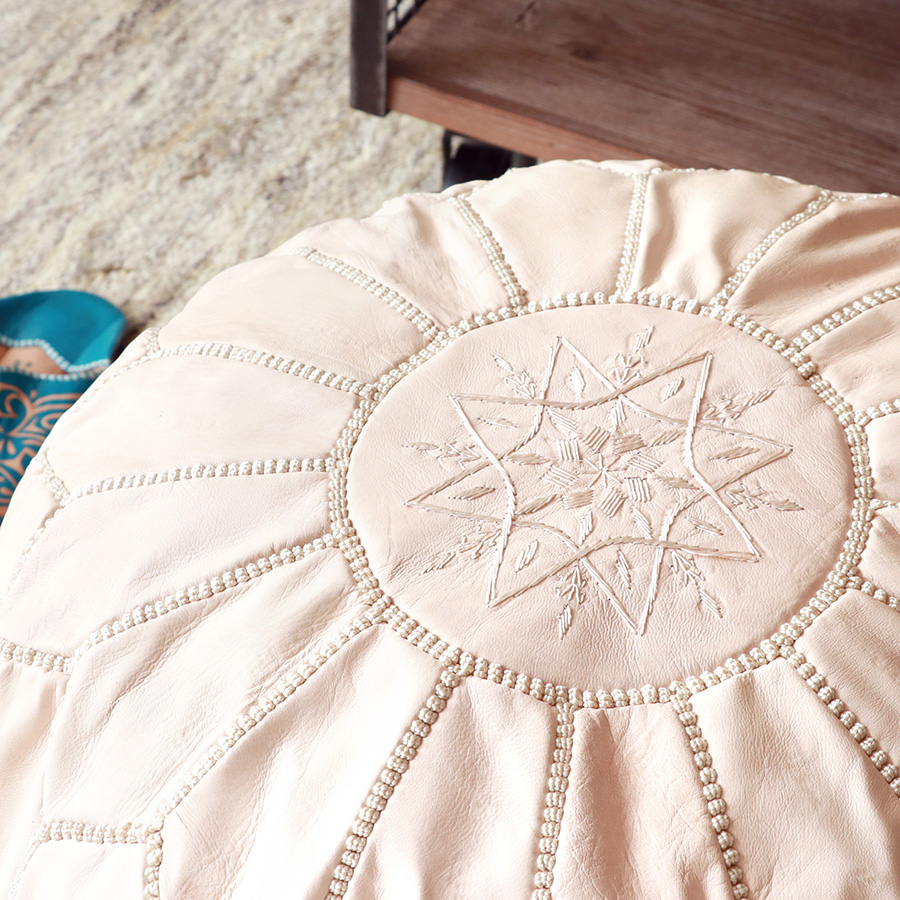 Moroccan POUF light beige モロッコ・プフφ50cm ヤギ革ヌメ・ナチュラル 中材付・オットマンスツール