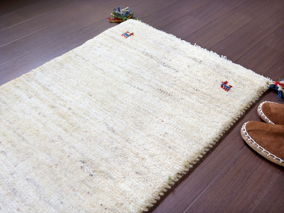 Key:ギャッベ, イラン, シラーズ, 手織り, 一点もの, 厚手, 草木染, 玄関マット, 無地, シンプル, アイボリー, ベージュ, 白