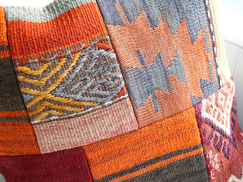 オールドキリムのフラグメントをパッチワークにしたクッションカバー。