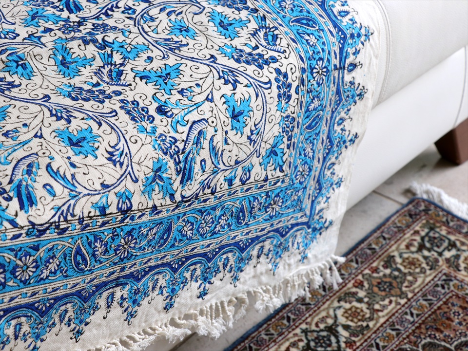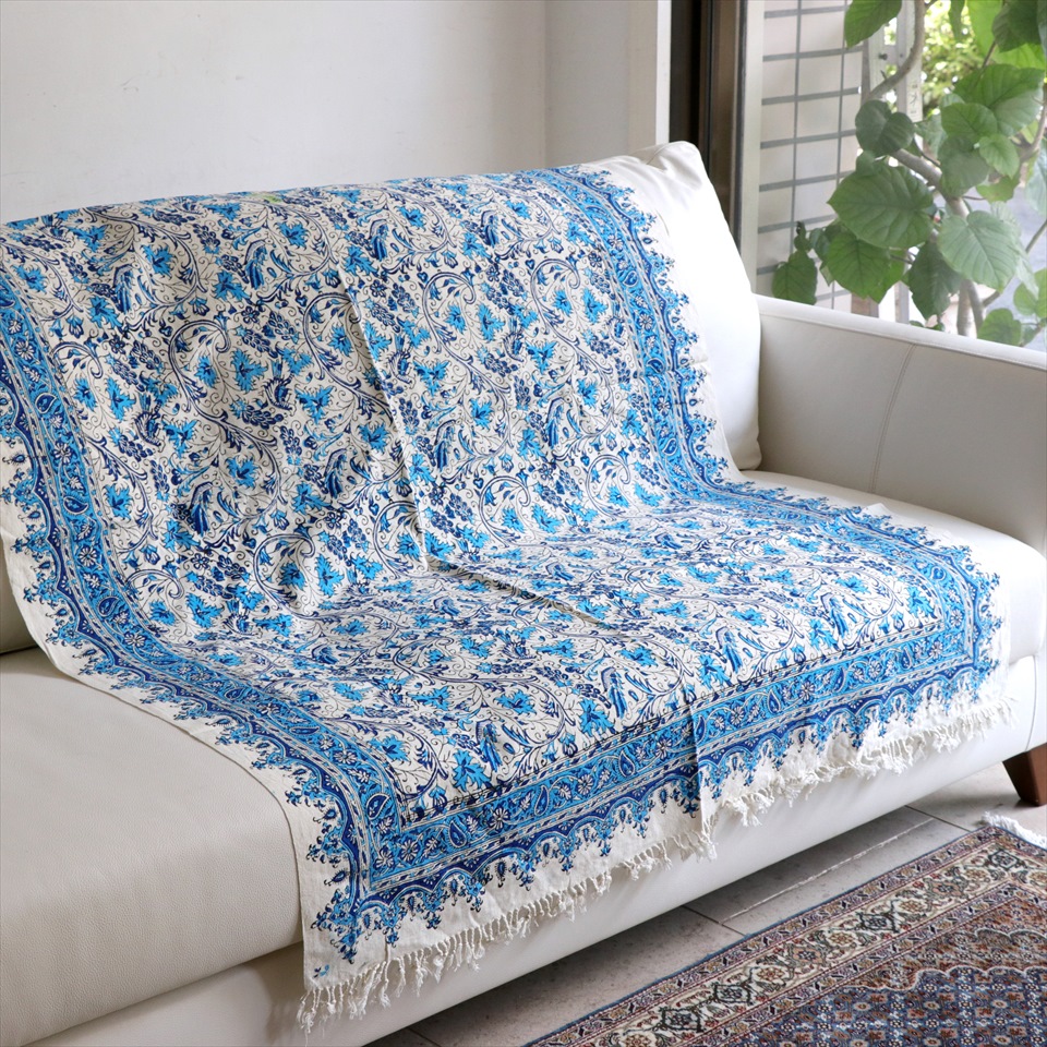 ガラムカールペルシャ更紗150×100cmサイズ ブルー(水色) 葡萄の葉