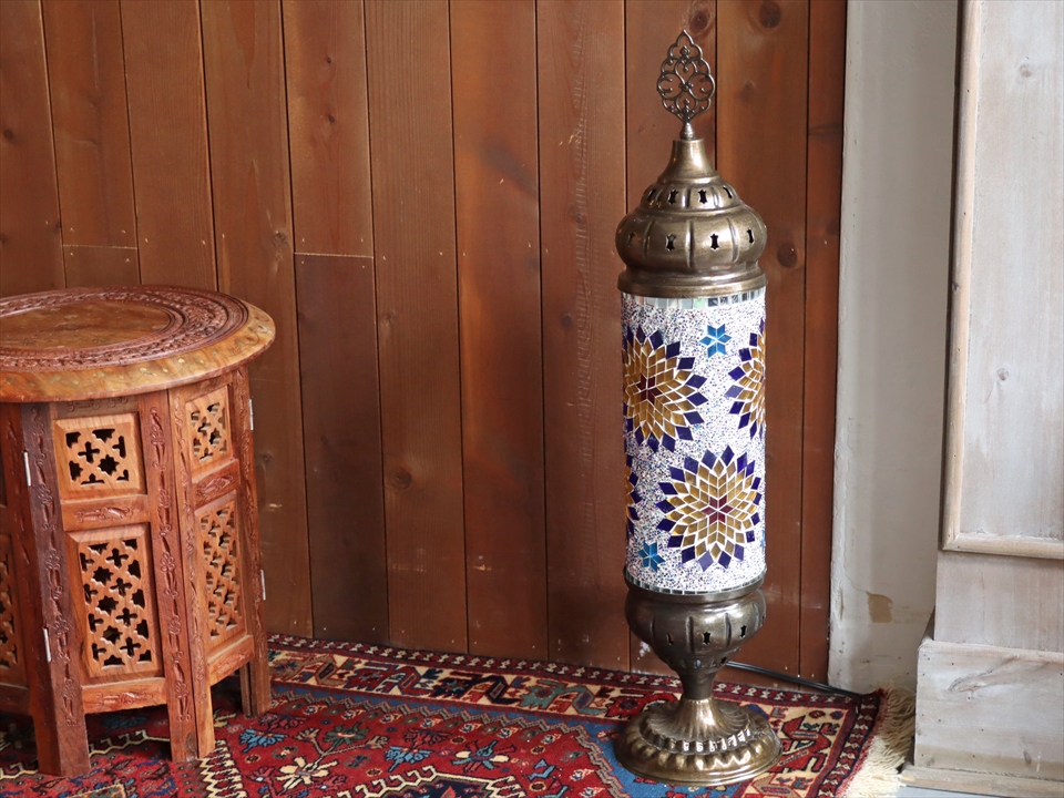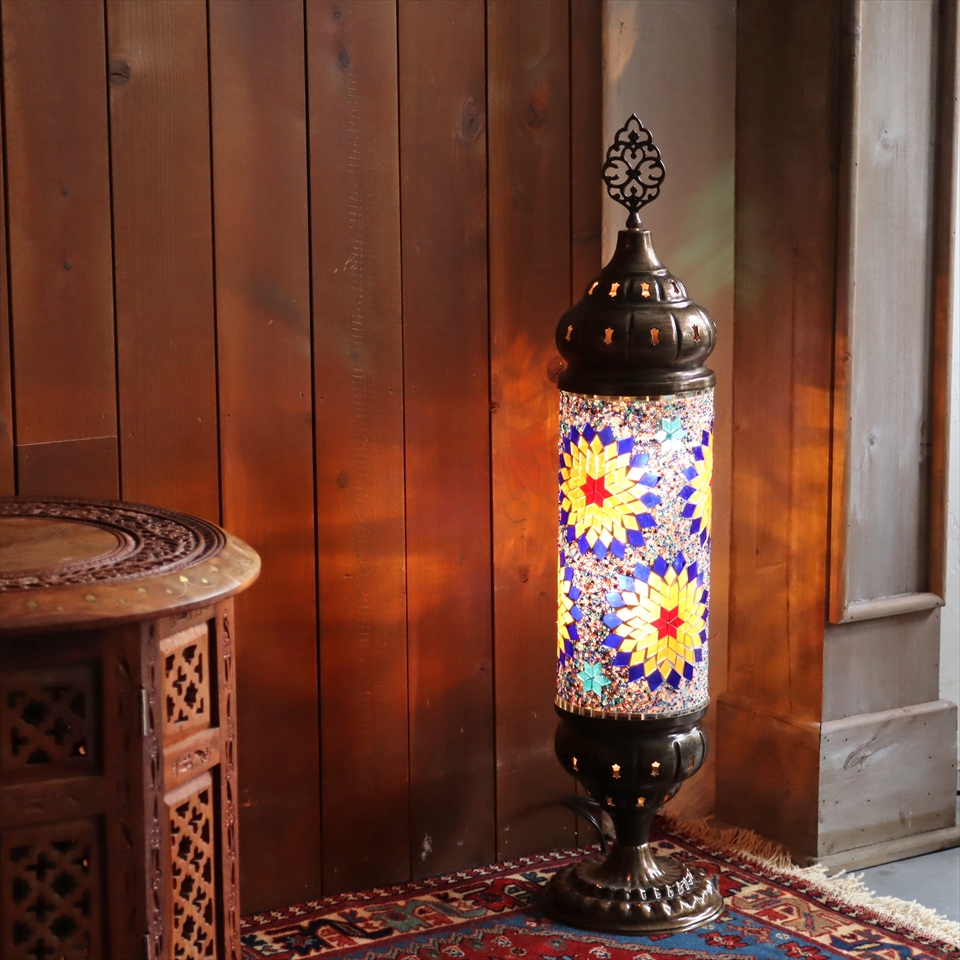 エキゾチックな光が楽しめるトルコ製モザイクガラスのスタンドランプ。