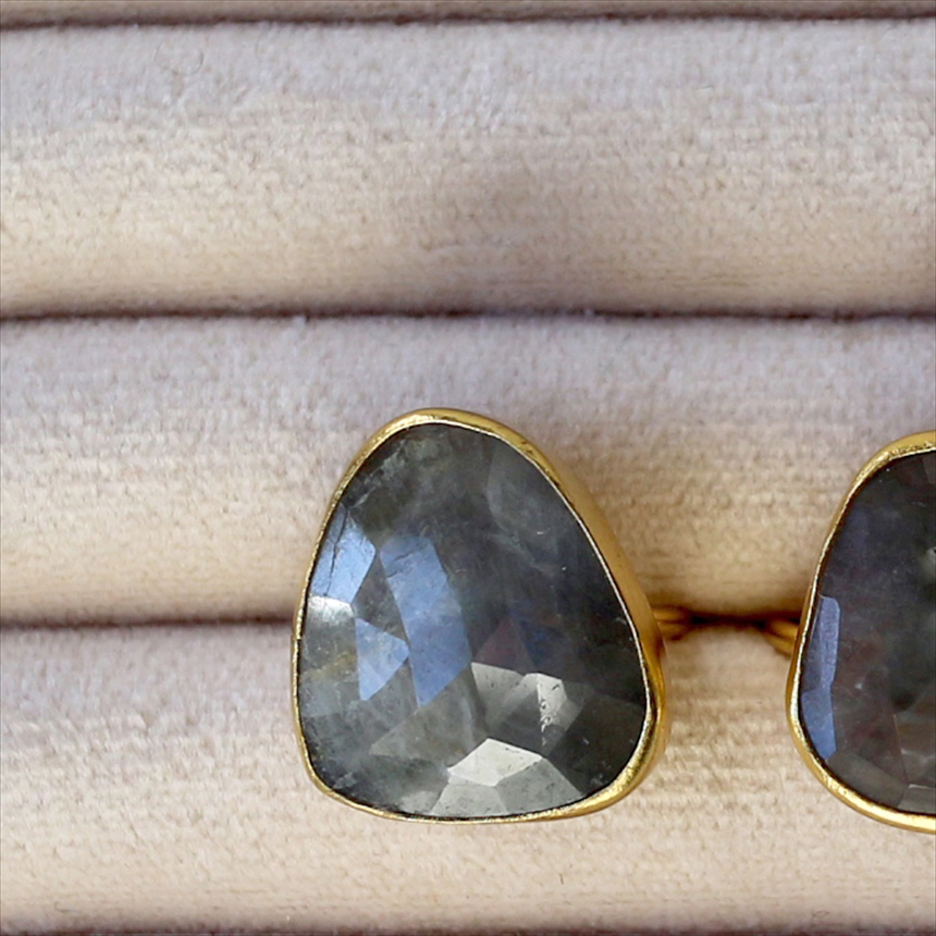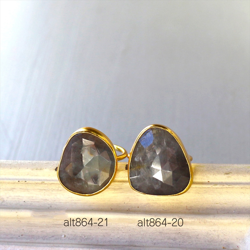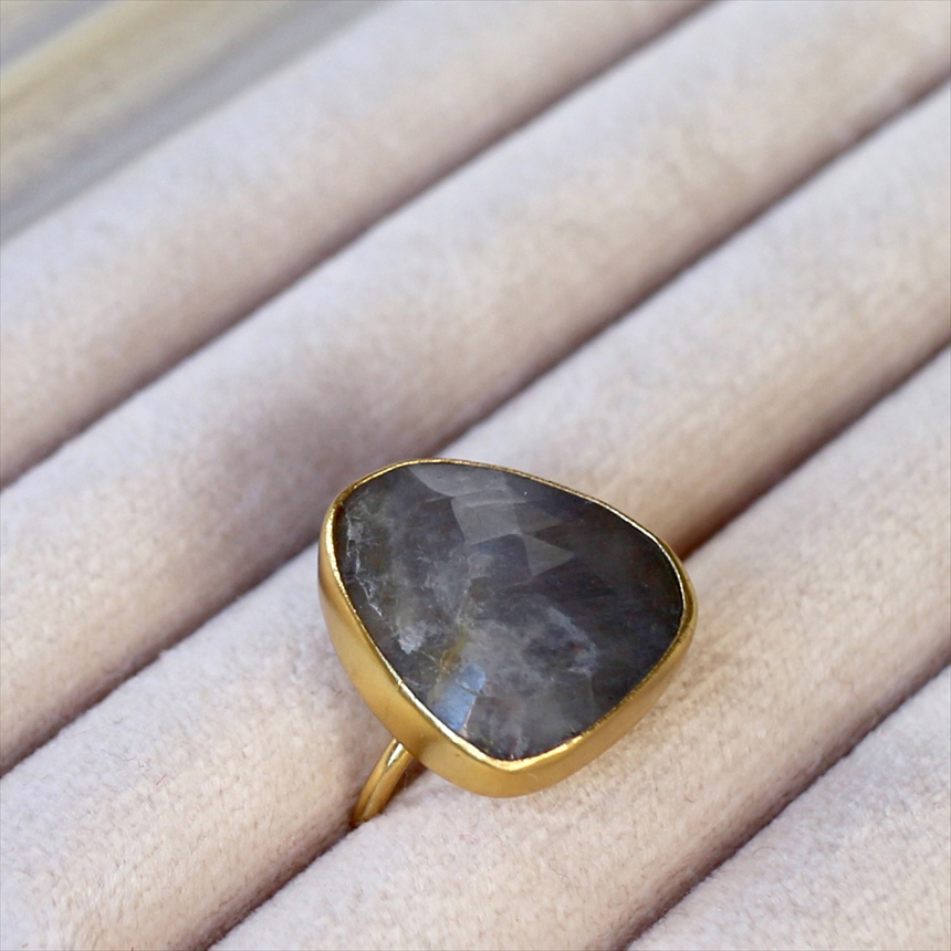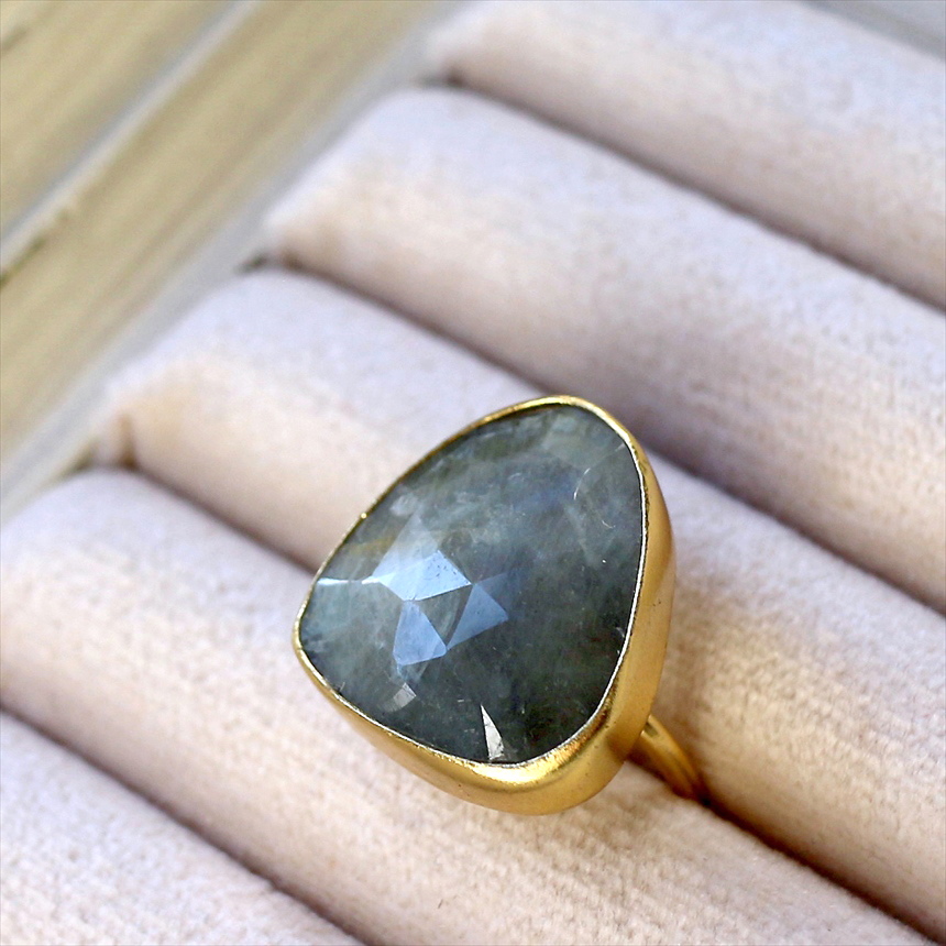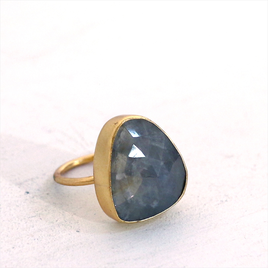ナチュラルサファイア ラフカットリング ブルーグレー アルサメイア 天然石22KGP トルコジュエリー