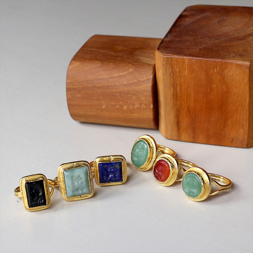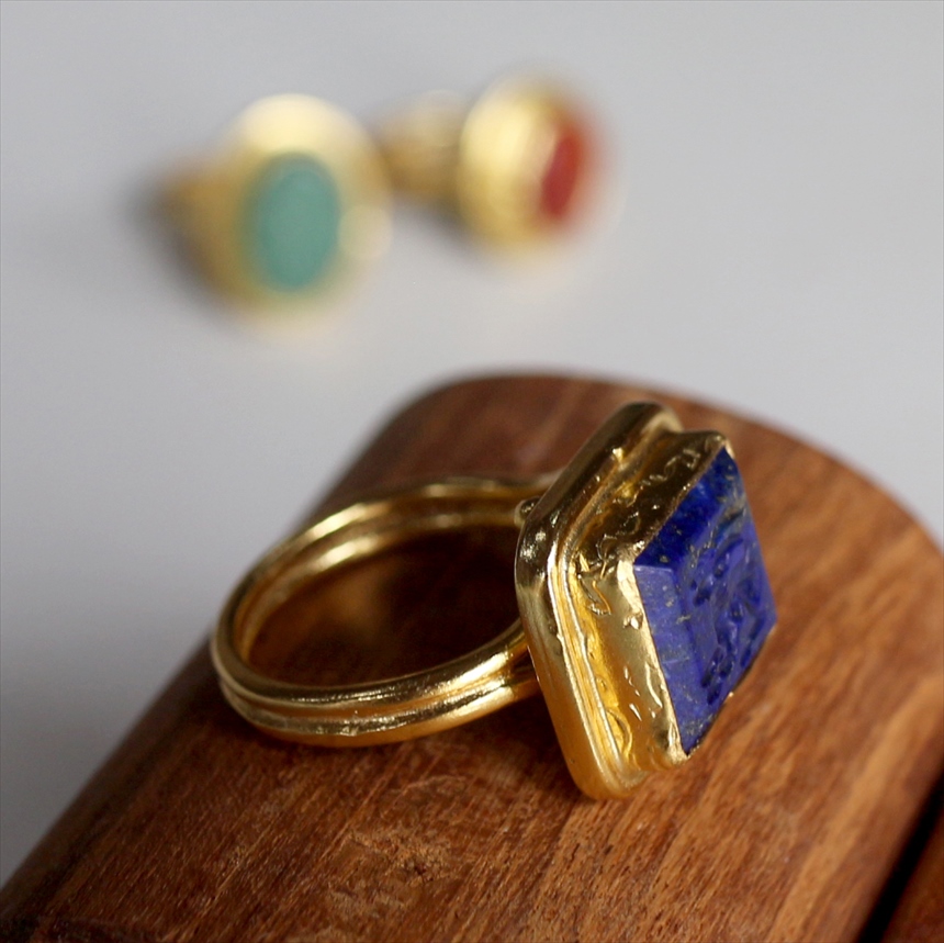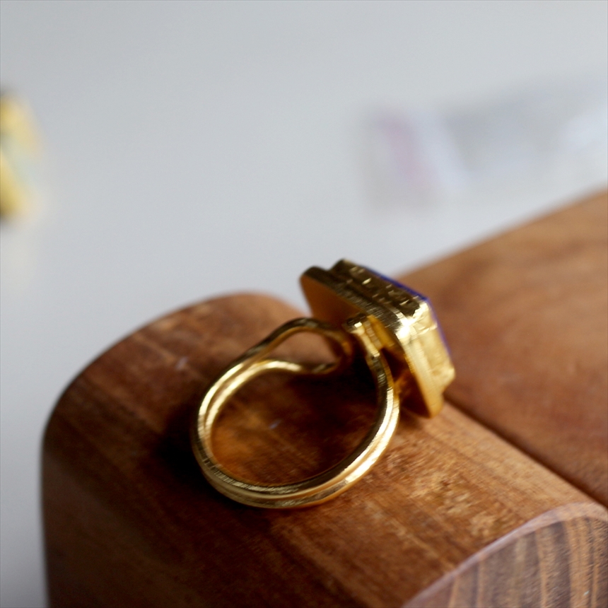 アルサメイア インタリオリング スクエア ラピスラズリ 天然石22Kゴールドプレーテッド トルコジュエリー