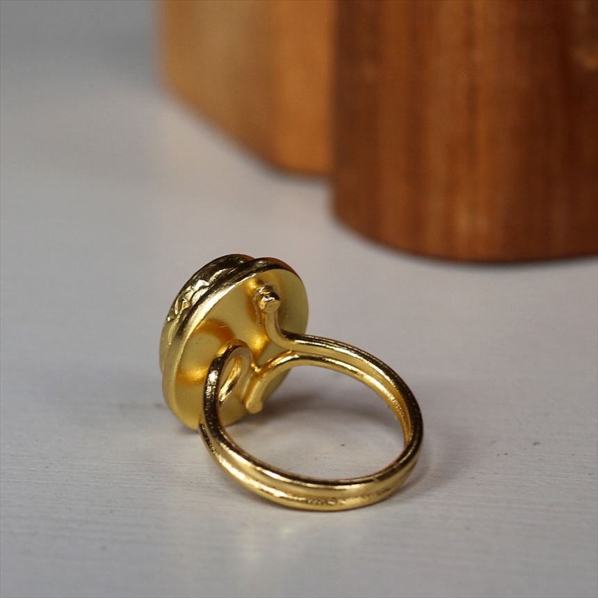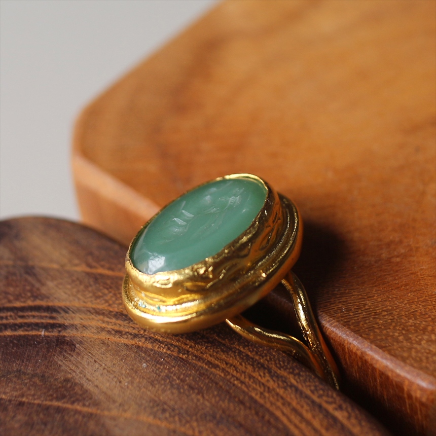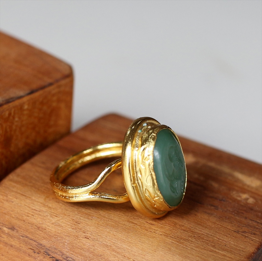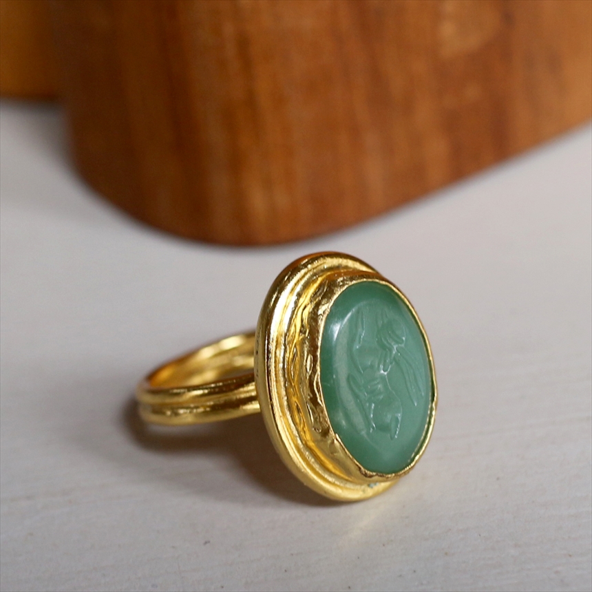 アルサメイア インタリオリング オーバル グリーンジェイド 天然石22Kゴールドプレーテッド トルコジュエリー