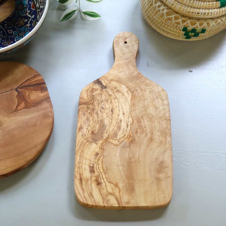 オリーブ木 カッティングボード(まな板)【現品】持ち手付 30cm チュニジア産 天然木