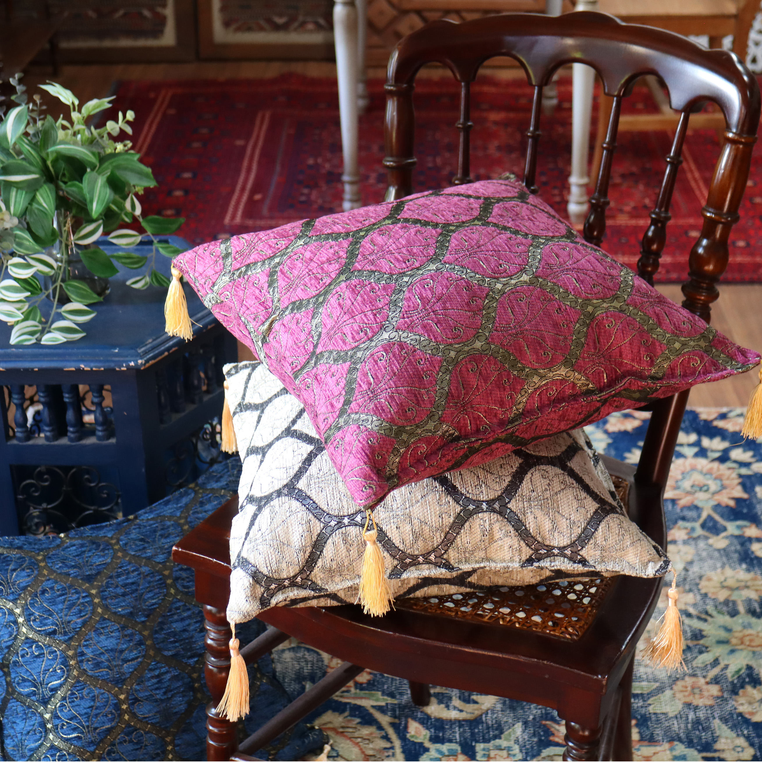 - クッションカバー 45x45cm トルコデザイン シュニール素材のクッションカバー クレスト・ローズピンク