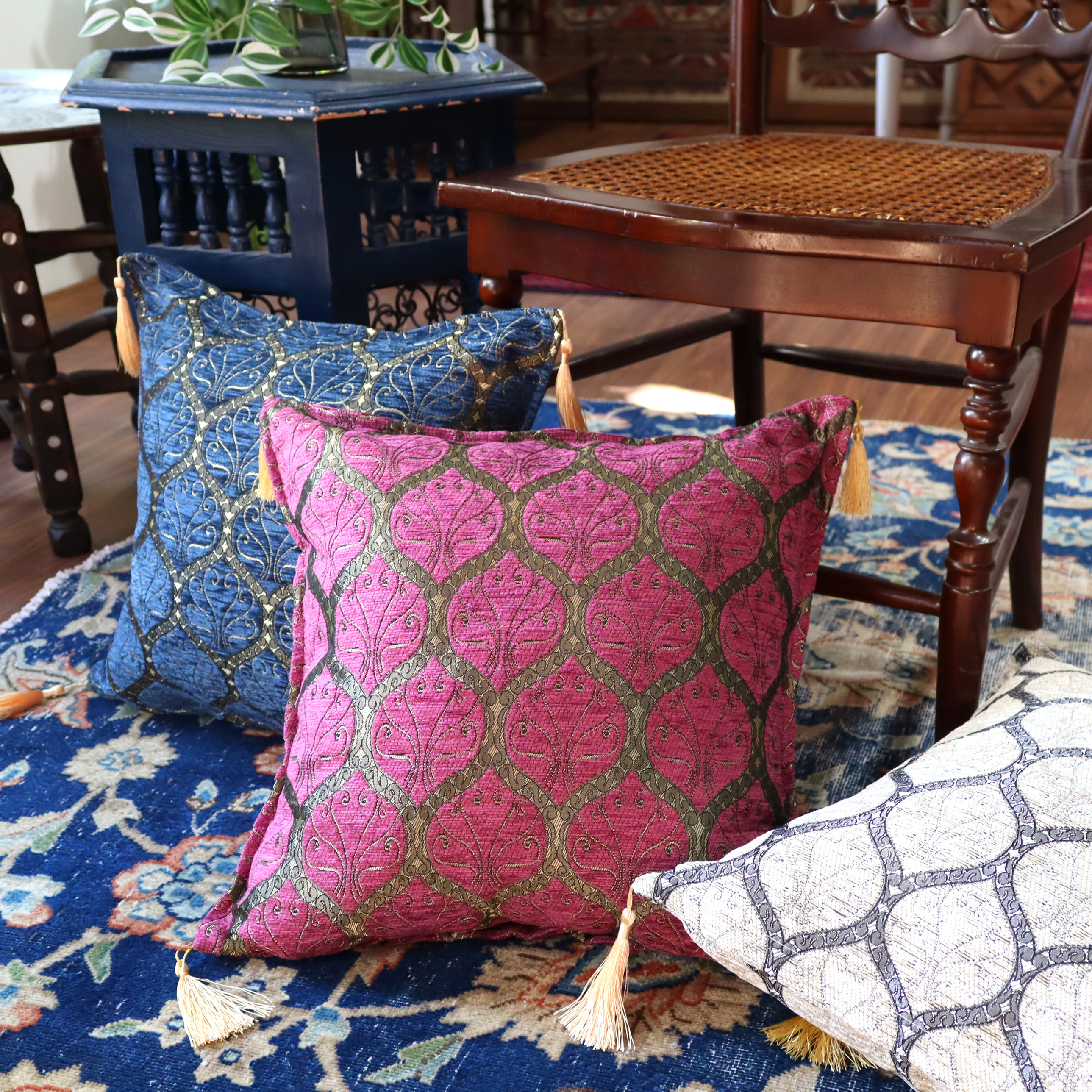 クッションカバー 45x45cm トルコデザイン シュニール素材のクッションカバー クレスト・ローズピンク