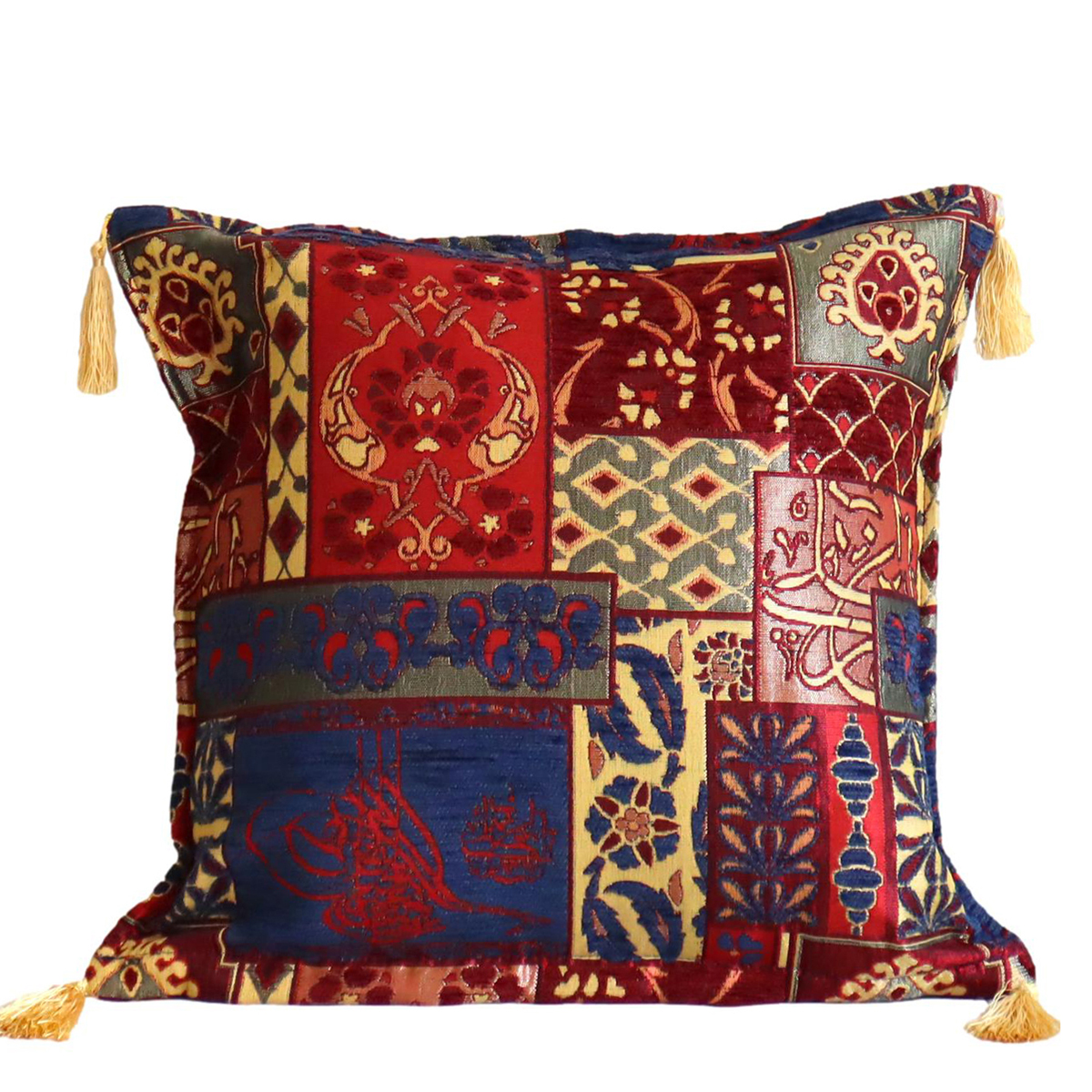 このスルタンの紋章をポイントに使ったエスニックなファブリックのクッションカバーです。ゴージャスなデザインで、ちょっぴりスルタンの気持ちが味わえます。