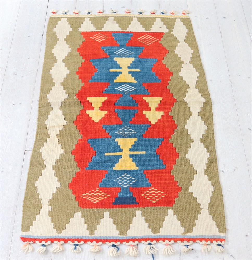 - カイセリ トルコ手織りキリム ヤストゥク99×56cm イーブルアイのモチーフ