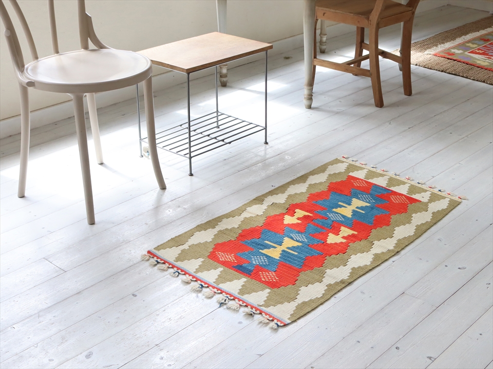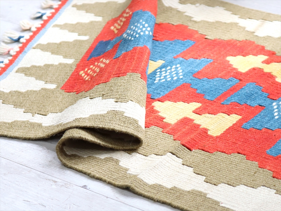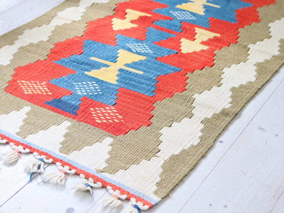 やわらかくしなやかな織り地で、やや厚手。カイセリ地方のキリムの特徴で、色の切り替え部分に隙間(スリットと呼んでいます)があいています。