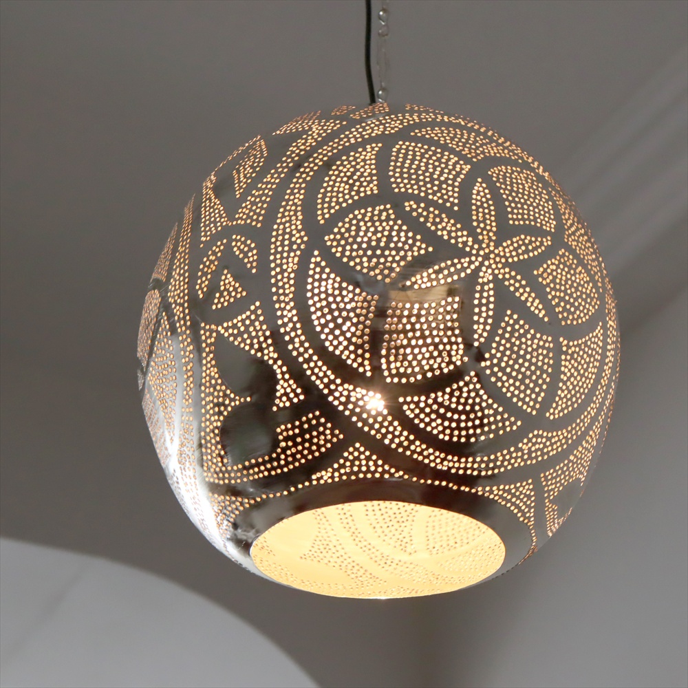- 【10%OFF】メタルシェード モロッコランプ Moroccan Metal shade Lamps ペンダントランプ ラウンド形 フラワー φ26cm エジプト製