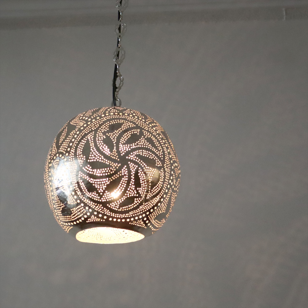 - 【10%OFF】モロッコランプ/Moroccan Metal shade Lamps メタルシェード ペンダントランプラウンド形 ロータス φ26cm エジプト製