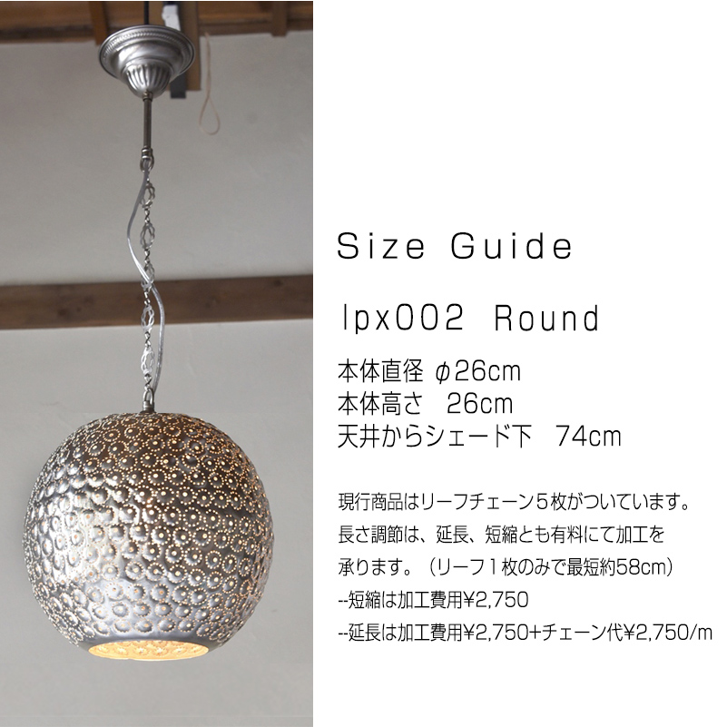 仕 様 | 口金/E17 60Wまで対応 ※LED電球対応 全高の延長・短縮は加工費用 2,750+チェーン代 2,750/mより承ります。 |