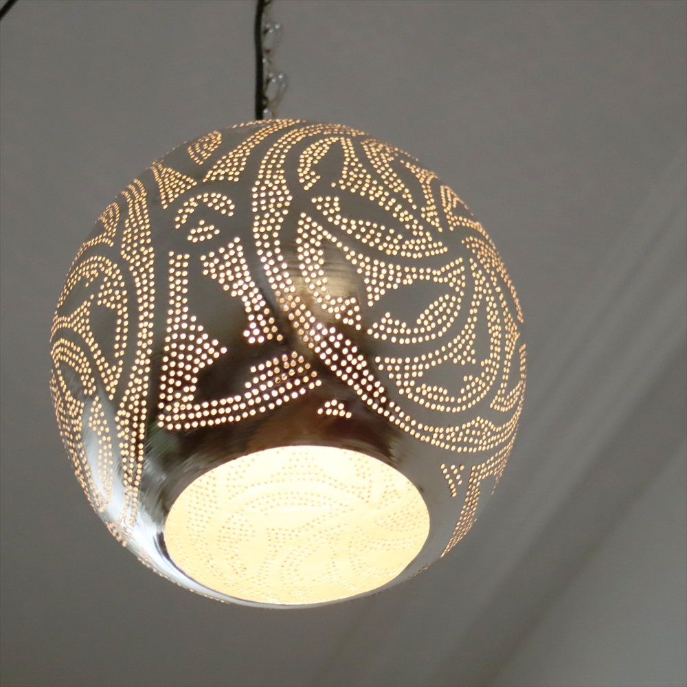 - 【10%OFF】モロッコランプ/Moroccan Metal shade Lamps メタルシェード ペンダントランプラウンド形 ロータス φ26cm エジプト製