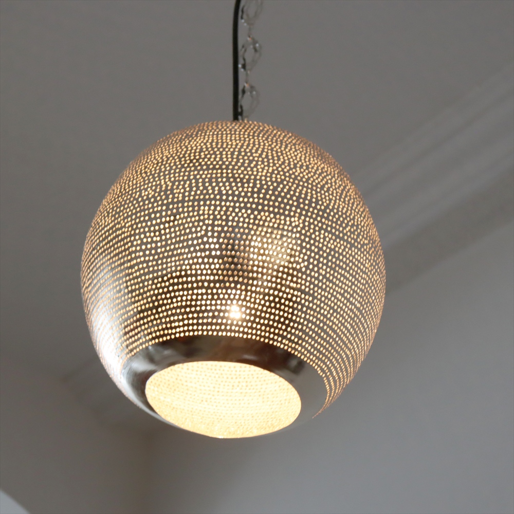 - 【10%OFF】モロッコランプ/Moroccan Metal shade Lamps メタルシェード ペンダントランプラウンド形 ドット φ26cm エジプト製