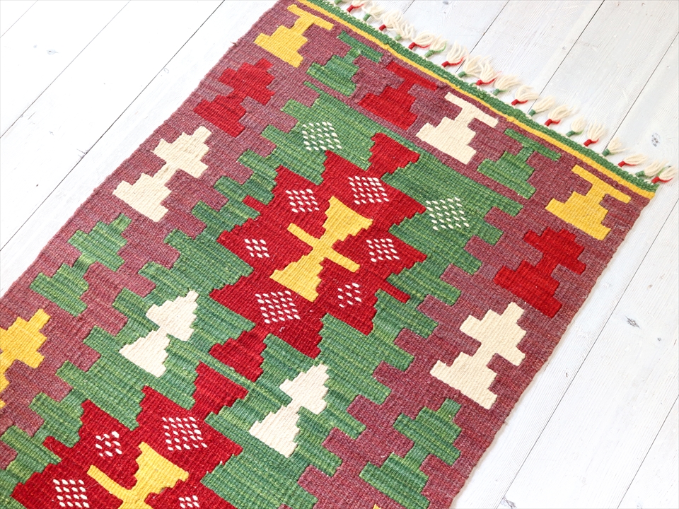 - カイセリ トルコ手織りキリム ヤストゥク102×58cm ベレケットのモチーフ